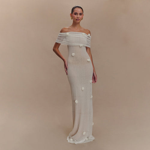 Raphaela Silver Beaded Floral Strapless Mermaid Maxi Dress Prom Wedding